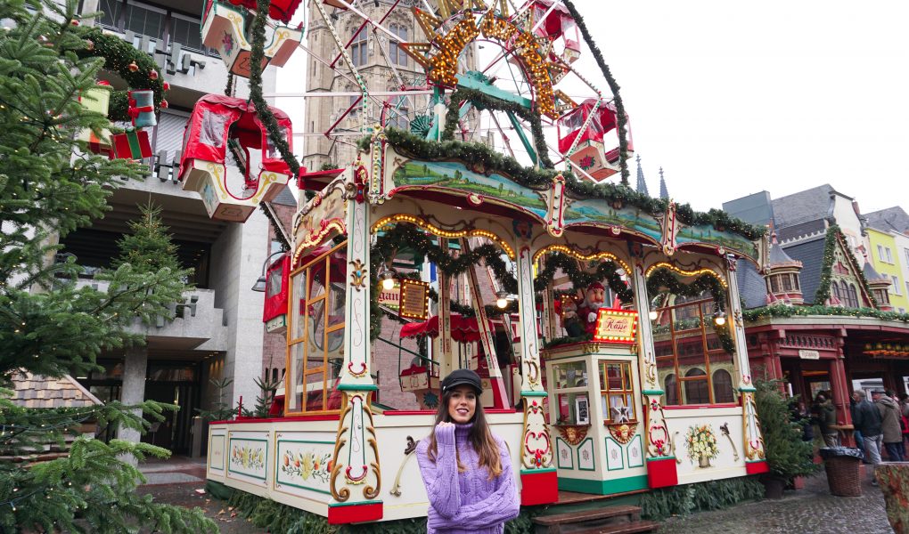 El mercado de navidad Alter Markt. Este mercado tiene un carrusel muy bonito, pista de patinaje sobre hielo, incluso una pequeña noria. Es como entrar en un cuento.